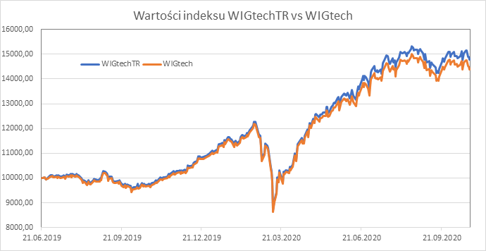 - WIGtechTR jest indeksem dochodowym istniejącego już indeksu WIGtech
