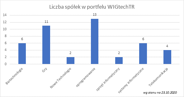 Wykres 3. Liczba spółek w portfelu WIGtechTR z poszczególnych sektorów