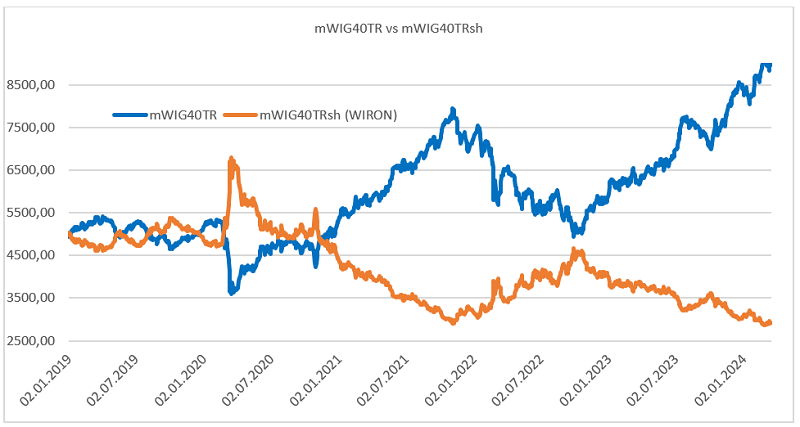 Wykres 1. Przebieg indeksu mWIG40TRsh vs. mWIG40TR