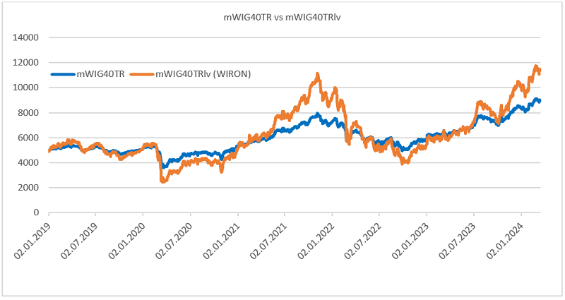 Wykres 2. Przebieg indeksu mWIG40TRlv vs. mWIG40TR